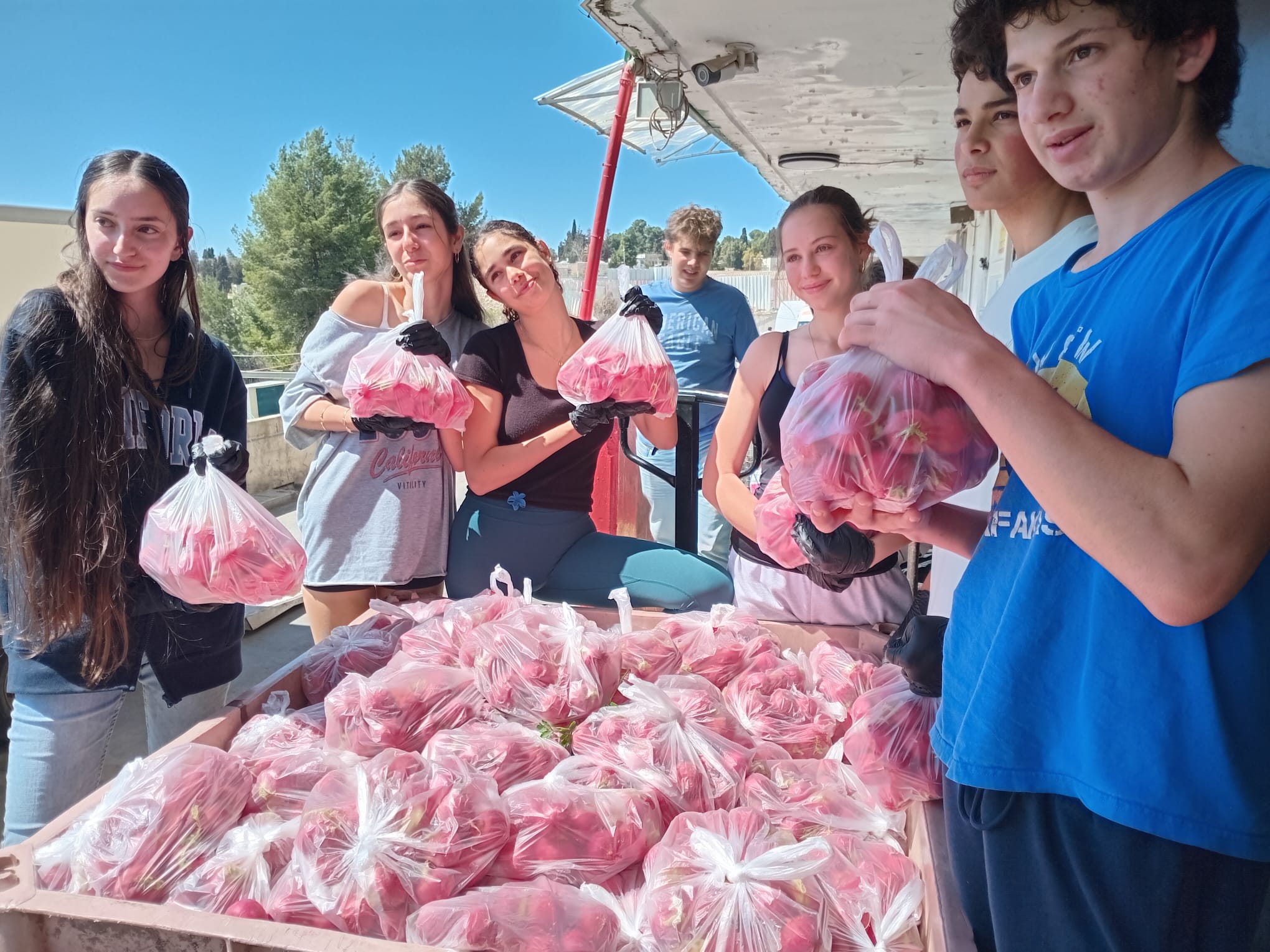 Tout au long de l’année, des bénévoles de France et de tous les pays d’Europe, d’Amérique du sud, des USA, du Canada, de l’ex-URSS etc, viennent avec leur groupe par l’intérmédiaire de Taglit, de Massa ou encore d’Israel Experience viennent trier les produits alimentaires et remplir des colis qui seront destinés aux familles ainsi que pour distribuer ces mêmes colis aux personnes à mobilité réduite.